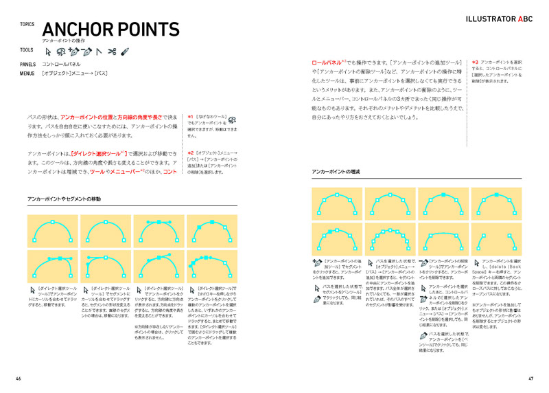 『Illustrator ABC』をフル活用するためのTIPSです。記事内の参照ページをあわせて読むと、機能やメニューについての理解が深まるでしょう。